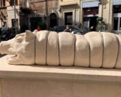 Roma - A Trastevere, in piazza San Giovanni della Malva, non poteva passare inosservata l’installazione della statua in travertino di una porchetta, intitolata ‘Dal panino si va in piazza’. A realizzarla, nell’ambito di un progetto