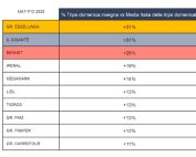 Il calo del surplus è legato al costo delle materie prime. Tra le note positive la consistenza dei prodotti lattiero/caseari, ma anche dei dolci e