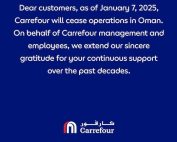 Mascate (Oman) - Carrefour ha chiuso tutti i punti vendita in Oman dal 7 gennaio. A comunicarlo è stata la stessa multinazionale tramite i suoi