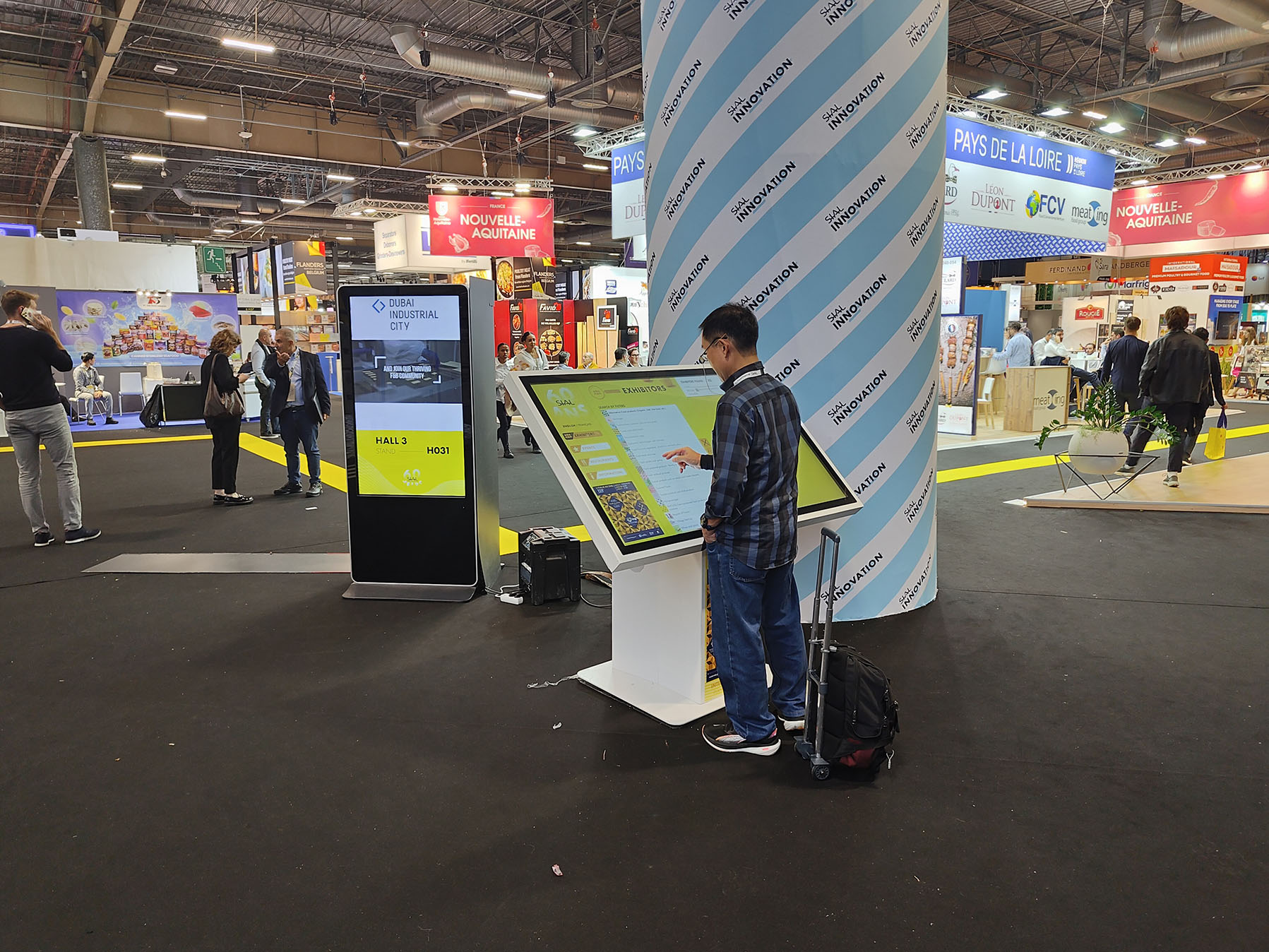 All’ingresso dei padiglioni, un elenco espositori digitale permetteva a chi arrivava di cercare velocemente i potenziali clienti. Le novità di prodotto erano ben presentate all’ingresso del padiglione delle carni.