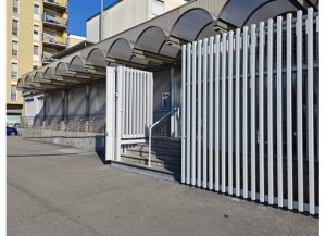La prima cosa che vediamo è la barriera. La direzione del supermercato, a seguito dell’aggressione e di numerosi appelli rimasti inascoltati, il 20 dicembre 2025 ha eretto un’alta cancellata (circa quattro metri) con porta richiudibile, a protezione dell’area più a rischio: il terrapieno d’ingresso. Ossia, la zona dove sono riposti i carrelli per i clienti, diventata un vero bivacco per tossicodipendenti e altri sbandati. “Qui fuori ormai era diventato un bed & breakfast”, ci rivela una cassiera, riferendosi al costante viavai di individui anche pericolosi, come quello che mesi fa ha aggredito un lavoratore del negozio. Del resto, risulta necessario presidiare i locali anche con un addetto alla sicurezza. La guardia non si limita a stare all’entrata, ma pattuglia attivamente corsie e scaffali. Probabilmente, la situazione si aggrava in ore tardo-pomeridiane e serali, ma anche noi, alle 11, abbiamo avuto modo di constatare un clima piuttosto teso dentro e fuori il supermercato.