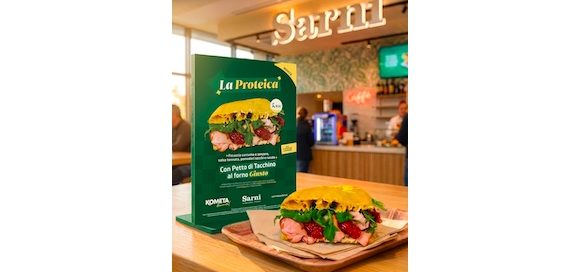 Garbagnate Monastero (Lc) – Il Petto di Tacchino al Forno Kometa si potrà gustare anche in autostrada dal 7 aprile. Kometa, azienda agro-alimentare specializzata nella trasformazione di carni suine e avicole, lancia in collaborazione con Sarni la nuova focaccia 'La Proteica'. Al centro della ricetta c’è Giusto Petto di Tacchino al Forno, uno dei prodotti