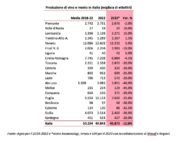 Roma - Scende di poco sotto i 44 milioni di ettolitri la produzione vitivinicola italiana, in calo del 12% rispetto ai 50 milioni del 2022.