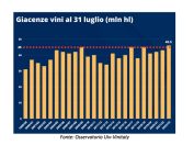 Roma – La vendemmia si apre con una giacenza di vino in cantina pari a 45,5 milioni di ettolitri, l’equivalente di oltre 6 miliardi di