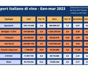 Roma - Si chiude un primo trimestre complicato per le vendite di vino italiano all’estero, con i volumi piatti (+0,1%) e una performance tendenziale in