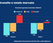 Montalcino (Si) – Il Brunello di Montalcino chiude i primi nove mesi del 2024 con un tendenziale in crescita del 5% a volume e dell’1%